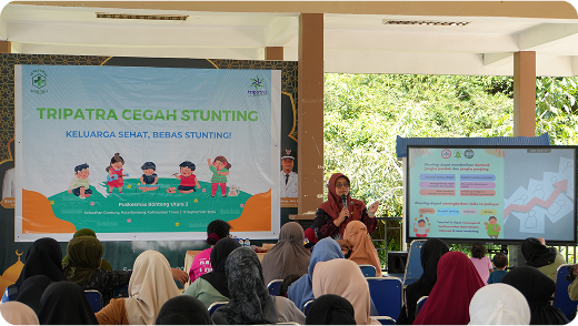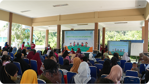 Tripatra provides knowledge on the importance of Clean and Healthy Living Behavior (PHBS) to prevent stunting through promotional health material about children's health development and growth and nutritious supplementary food package distribution for mothers in Gunungkidul Regency.